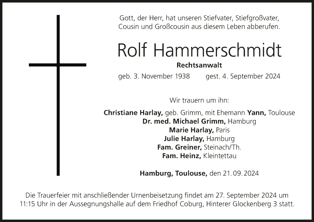 Hier finden Sie alle Traueranzeigen aus der Zeitung, die bisher für Rolf Hammerschmidt erschienen sind. Weitere Traueranzeigen, die in der Zeitung erscheinen, werden hier ebenfalls aufgelistet