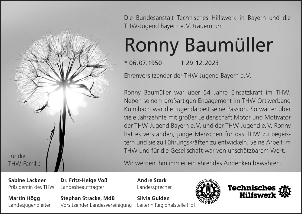 Hier finden Sie alle Traueranzeigen aus der Zeitung, die bisher für Ronny Baumüller erschienen sind. Weitere Traueranzeigen, die in der Zeitung erscheinen, werden hier ebenfalls aufgelistet