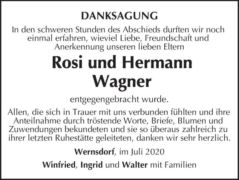 Hier finden Sie alle Traueranzeigen aus der Zeitung, die bisher für Rosi Wagner erschienen sind. Weitere Traueranzeigen, die in der Zeitung erscheinen, werden hier ebenfalls aufgelistet