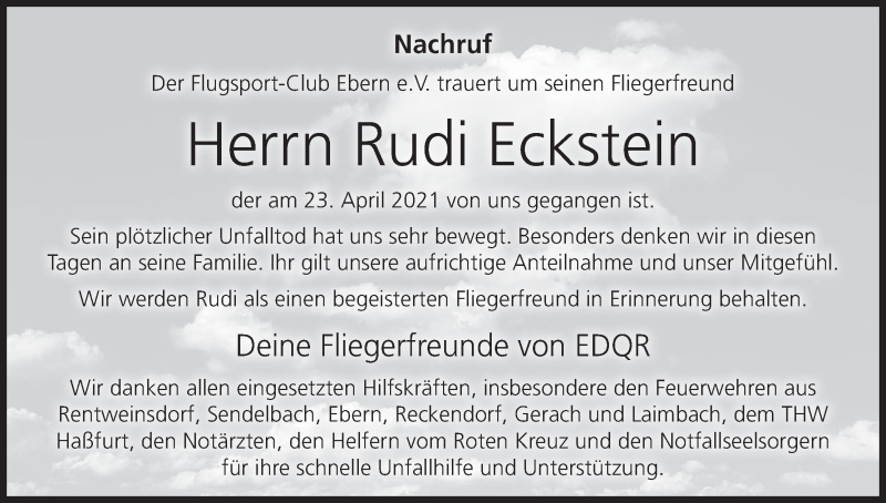 Hier finden Sie alle Traueranzeigen aus der Zeitung, die bisher für Rudi Eckstein erschienen sind. Weitere Traueranzeigen, die in der Zeitung erscheinen, werden hier ebenfalls aufgelistet