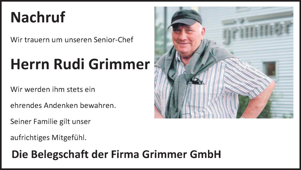Hier finden Sie alle Traueranzeigen aus der Zeitung, die bisher für Rudi Grimmer erschienen sind. Weitere Traueranzeigen, die in der Zeitung erscheinen, werden hier ebenfalls aufgelistet
