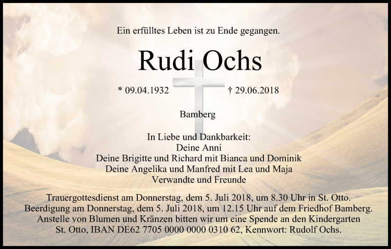 Hier finden Sie alle Traueranzeigen aus der Zeitung, die bisher für Rudi Ochs erschienen sind. Weitere Traueranzeigen, die in der Zeitung erscheinen, werden hier ebenfalls aufgelistet