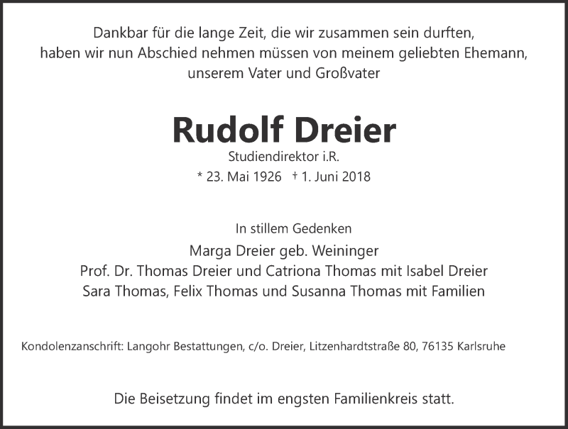 Hier finden Sie alle Traueranzeigen aus der Zeitung, die bisher für Rudolf Dreier erschienen sind. Weitere Traueranzeigen, die in der Zeitung erscheinen, werden hier ebenfalls aufgelistet