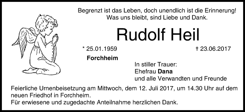 Hier finden Sie alle Traueranzeigen aus der Zeitung, die bisher für Rudolf Heil erschienen sind. Weitere Traueranzeigen, die in der Zeitung erscheinen, werden hier ebenfalls aufgelistet