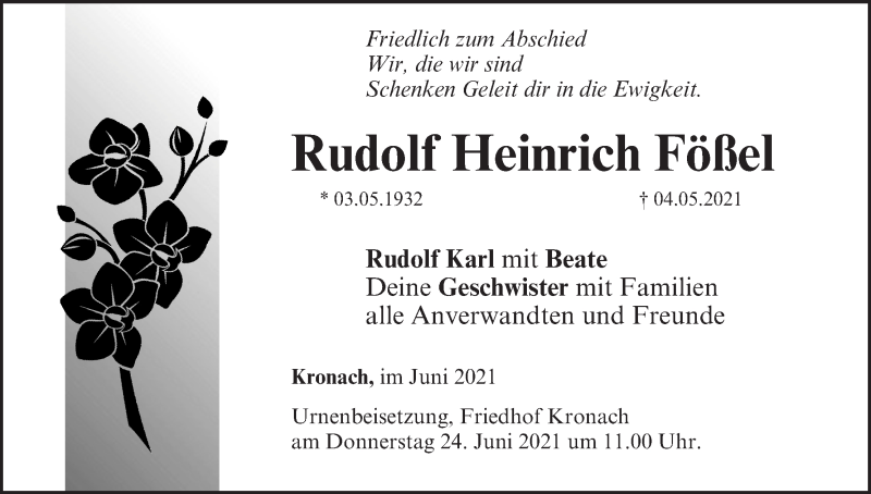 Hier finden Sie alle Traueranzeigen aus der Zeitung, die bisher für Rudolf Heinrich Fößel erschienen sind. Weitere Traueranzeigen, die in der Zeitung erscheinen, werden hier ebenfalls aufgelistet