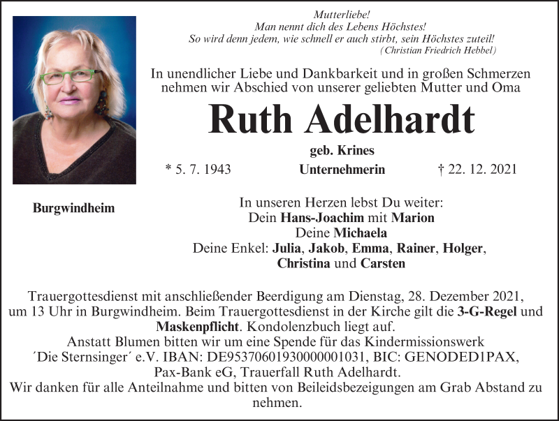 Hier finden Sie alle Traueranzeigen aus der Zeitung, die bisher für Ruth Adelhardt erschienen sind. Weitere Traueranzeigen, die in der Zeitung erscheinen, werden hier ebenfalls aufgelistet