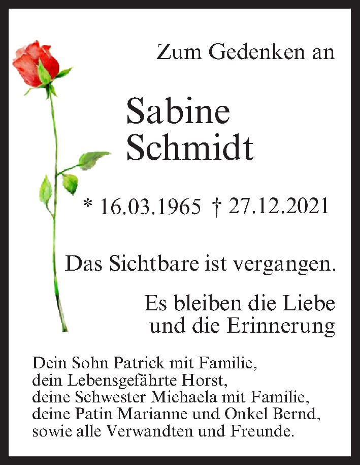 Hier finden Sie alle Traueranzeigen aus der Zeitung, die bisher für Sabine Schmidt erschienen sind. Weitere Traueranzeigen, die in der Zeitung erscheinen, werden hier ebenfalls aufgelistet