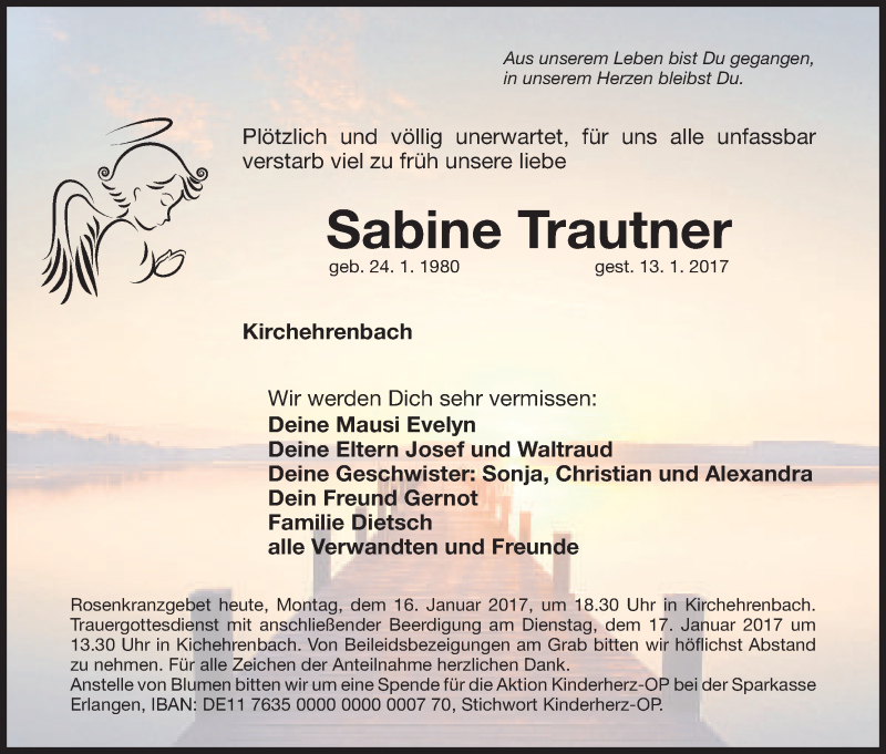 Hier finden Sie alle Traueranzeigen aus der Zeitung, die bisher für Sabine Trautner erschienen sind. Weitere Traueranzeigen, die in der Zeitung erscheinen, werden hier ebenfalls aufgelistet