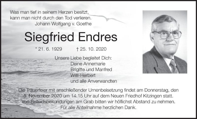 Hier finden Sie alle Traueranzeigen aus der Zeitung, die bisher für Siegfried Endres erschienen sind. Weitere Traueranzeigen, die in der Zeitung erscheinen, werden hier ebenfalls aufgelistet