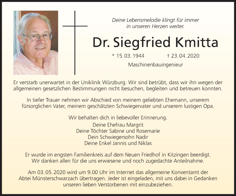 Hier finden Sie alle Traueranzeigen aus der Zeitung, die bisher für Siegfried Kmitta erschienen sind. Weitere Traueranzeigen, die in der Zeitung erscheinen, werden hier ebenfalls aufgelistet