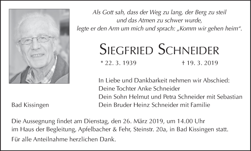 Hier finden Sie alle Traueranzeigen aus der Zeitung, die bisher für Siegfried Schneider erschienen sind. Weitere Traueranzeigen, die in der Zeitung erscheinen, werden hier ebenfalls aufgelistet