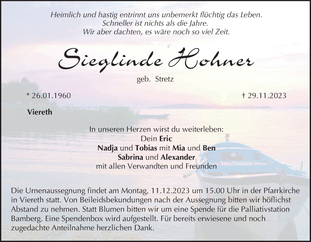 Hier finden Sie alle Traueranzeigen aus der Zeitung, die bisher für Sieglinde Hohner erschienen sind. Weitere Traueranzeigen, die in der Zeitung erscheinen, werden hier ebenfalls aufgelistet