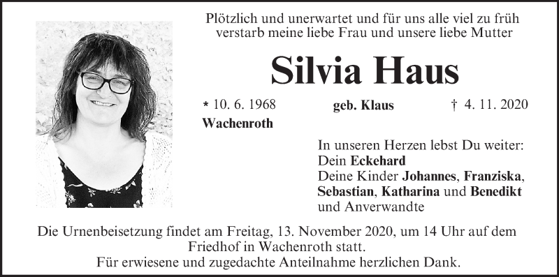 Hier finden Sie alle Traueranzeigen aus der Zeitung, die bisher für Silvia Haus erschienen sind. Weitere Traueranzeigen, die in der Zeitung erscheinen, werden hier ebenfalls aufgelistet