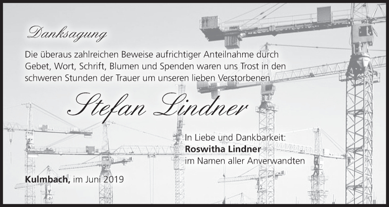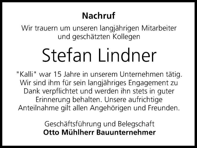 Hier finden Sie alle Traueranzeigen aus der Zeitung, die bisher für Stefan Lindner erschienen sind. Weitere Traueranzeigen, die in der Zeitung erscheinen, werden hier ebenfalls aufgelistet