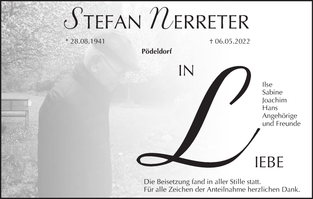 Hier finden Sie alle Traueranzeigen aus der Zeitung, die bisher für Stefan Nerreter erschienen sind. Weitere Traueranzeigen, die in der Zeitung erscheinen, werden hier ebenfalls aufgelistet