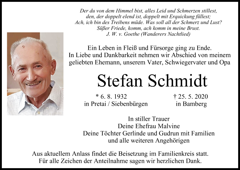 Hier finden Sie alle Traueranzeigen aus der Zeitung, die bisher für Stefan Schmidt erschienen sind. Weitere Traueranzeigen, die in der Zeitung erscheinen, werden hier ebenfalls aufgelistet