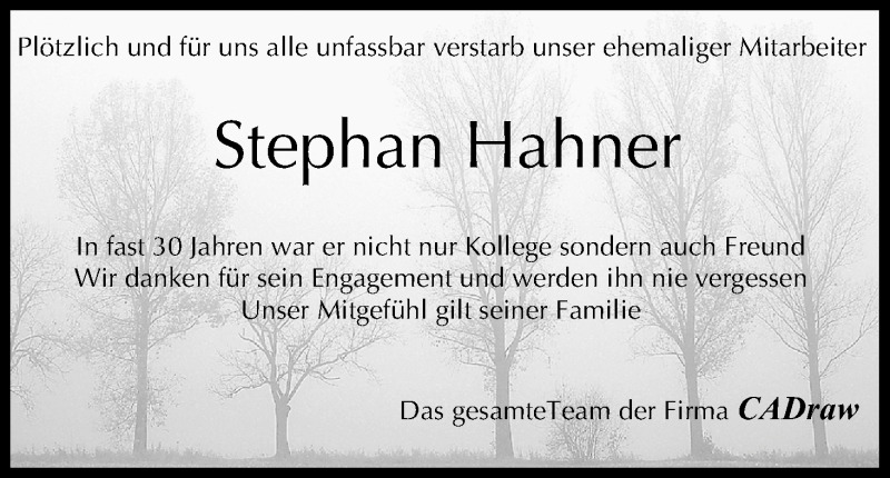 Hier finden Sie alle Traueranzeigen aus der Zeitung, die bisher für Stephan Hahner erschienen sind. Weitere Traueranzeigen, die in der Zeitung erscheinen, werden hier ebenfalls aufgelistet
