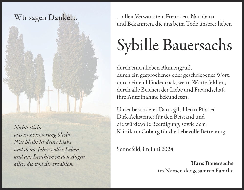 Hier finden Sie alle Traueranzeigen aus der Zeitung, die bisher für Sybille Bauersachs erschienen sind. Weitere Traueranzeigen, die in der Zeitung erscheinen, werden hier ebenfalls aufgelistet