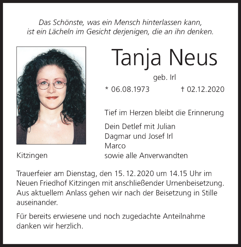 Hier finden Sie alle Traueranzeigen aus der Zeitung, die bisher für Tanja Neus erschienen sind. Weitere Traueranzeigen, die in der Zeitung erscheinen, werden hier ebenfalls aufgelistet