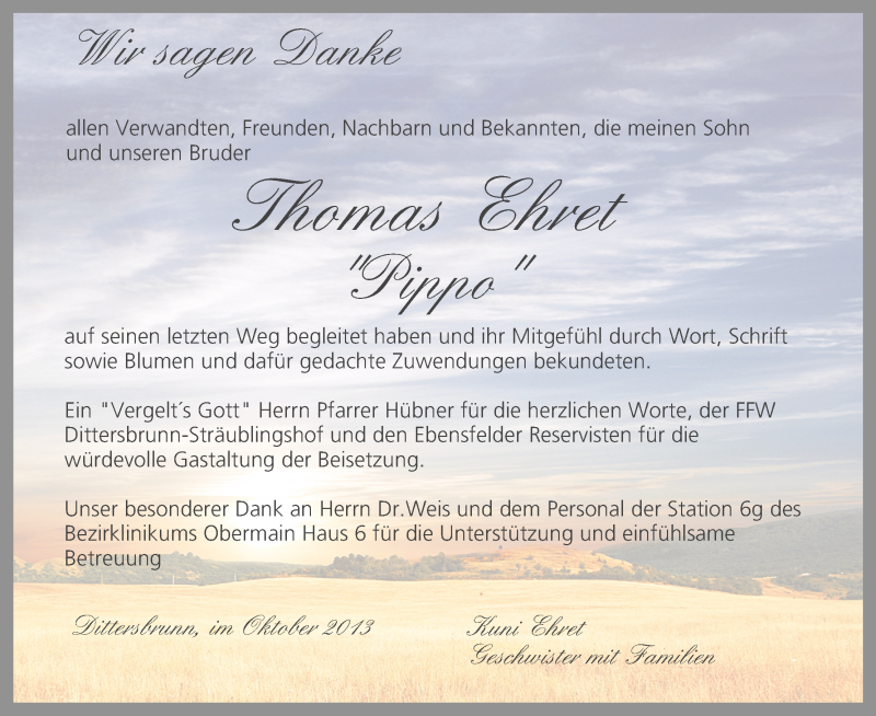 Hier finden Sie alle Traueranzeigen aus der Zeitung, die bisher für Thomas Ehret erschienen sind. Weitere Traueranzeigen, die in der Zeitung erscheinen, werden hier ebenfalls aufgelistet