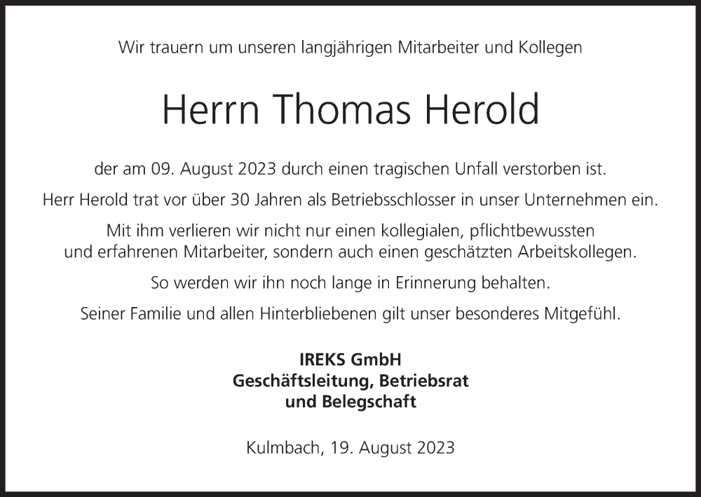 Hier finden Sie alle Traueranzeigen aus der Zeitung, die bisher für Thomas Herold erschienen sind. Weitere Traueranzeigen, die in der Zeitung erscheinen, werden hier ebenfalls aufgelistet
