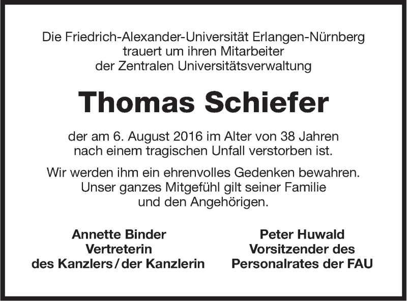 Hier finden Sie alle Traueranzeigen aus der Zeitung, die bisher für Thomas Schiefer erschienen sind. Weitere Traueranzeigen, die in der Zeitung erscheinen, werden hier ebenfalls aufgelistet
