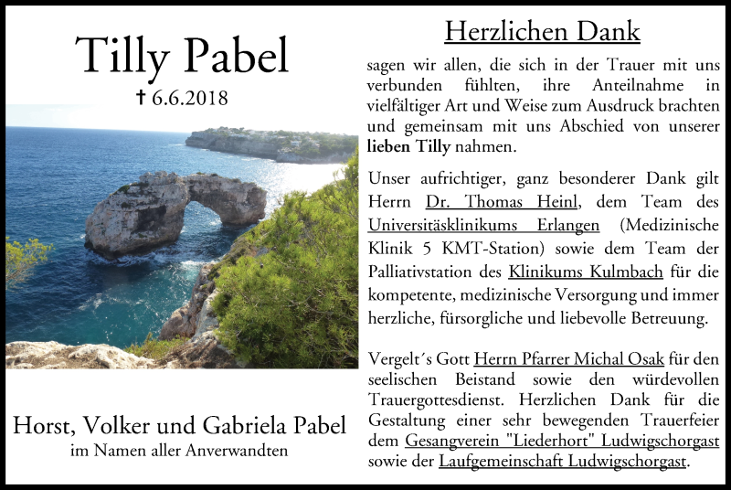 Hier finden Sie alle Traueranzeigen aus der Zeitung, die bisher für Tilly Pabel erschienen sind. Weitere Traueranzeigen, die in der Zeitung erscheinen, werden hier ebenfalls aufgelistet