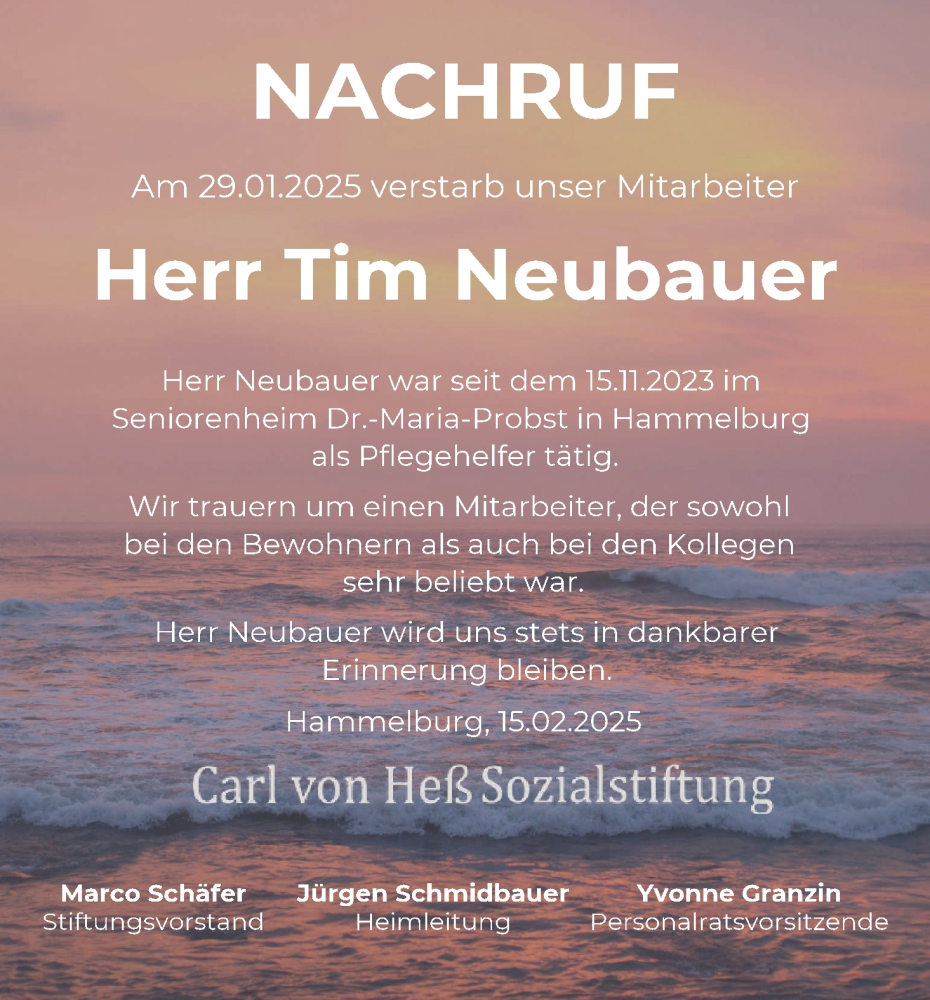 Hier finden Sie alle Traueranzeigen aus der Zeitung, die bisher für Tim Neubauer erschienen sind. Weitere Traueranzeigen, die in der Zeitung erscheinen, werden hier ebenfalls aufgelistet