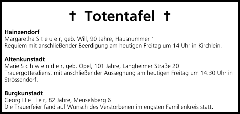 Hier finden Sie alle Traueranzeigen aus der Zeitung, die bisher für Totentafel 23.05.2014 erschienen sind. Weitere Traueranzeigen, die in der Zeitung erscheinen, werden hier ebenfalls aufgelistet