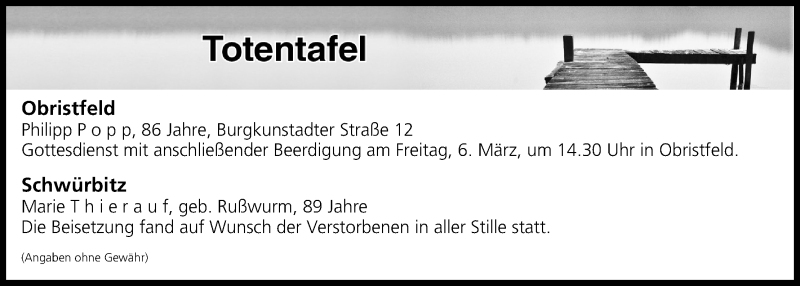 Hier finden Sie alle Traueranzeigen aus der Zeitung, die bisher für Totentafel vom 06.03.2020 erschienen sind. Weitere Traueranzeigen, die in der Zeitung erscheinen, werden hier ebenfalls aufgelistet