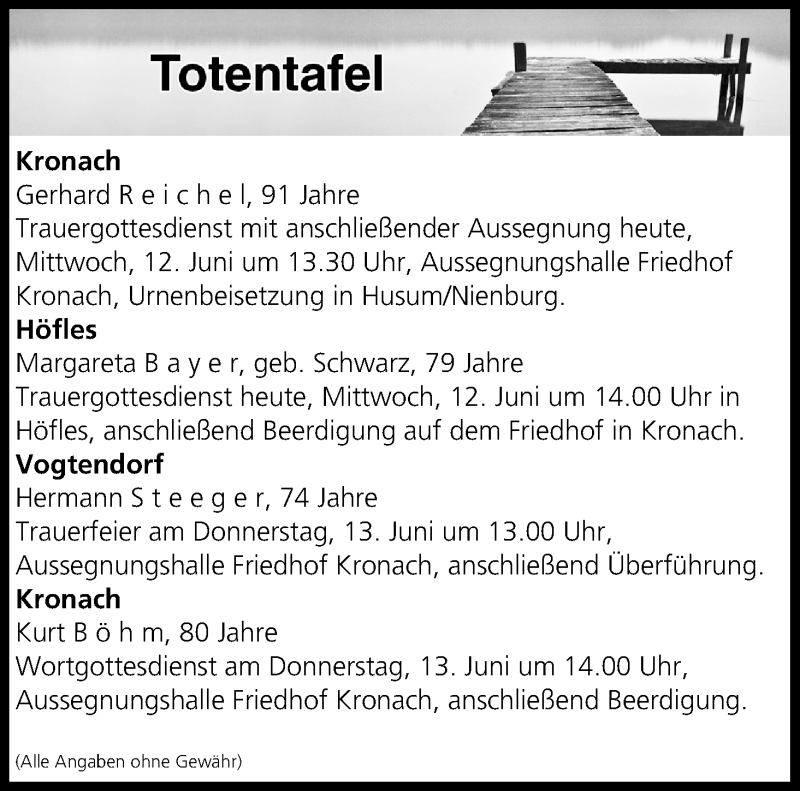 Hier finden Sie alle Traueranzeigen aus der Zeitung, die bisher für Totentafel vom 12.06.2019 erschienen sind. Weitere Traueranzeigen, die in der Zeitung erscheinen, werden hier ebenfalls aufgelistet