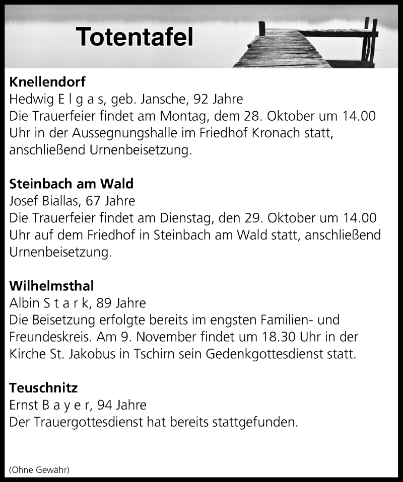Hier finden Sie alle Traueranzeigen aus der Zeitung, die bisher für Totentafel vom 26.10.2019 erschienen sind. Weitere Traueranzeigen, die in der Zeitung erscheinen, werden hier ebenfalls aufgelistet
