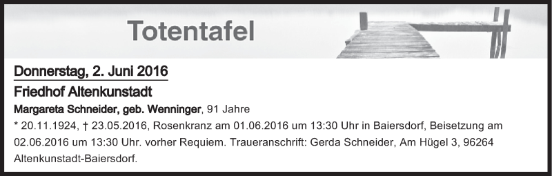 Hier finden Sie alle Traueranzeigen aus der Zeitung, die bisher für Totentafel vom 02.06.2016 erschienen sind. Weitere Traueranzeigen, die in der Zeitung erscheinen, werden hier ebenfalls aufgelistet