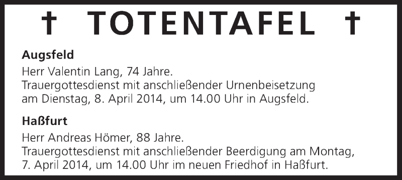 Hier finden Sie alle Traueranzeigen aus der Zeitung, die bisher für Totentafel vom 05.04.2013 erschienen sind. Weitere Traueranzeigen, die in der Zeitung erscheinen, werden hier ebenfalls aufgelistet