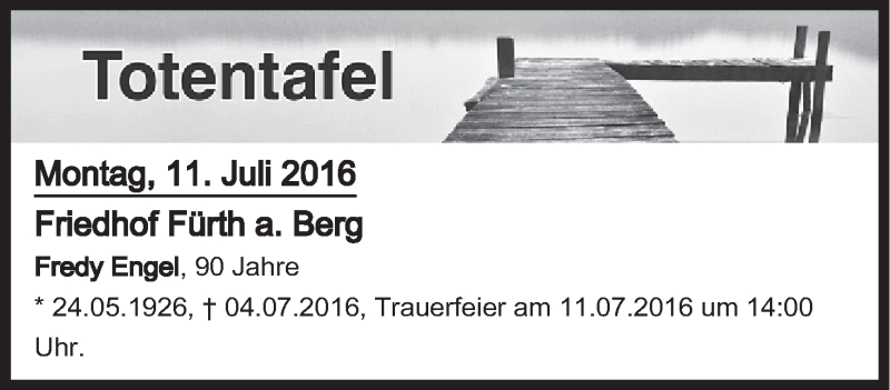 Hier finden Sie alle Traueranzeigen aus der Zeitung, die bisher für Totentafel vom 11.07.2016 erschienen sind. Weitere Traueranzeigen, die in der Zeitung erscheinen, werden hier ebenfalls aufgelistet