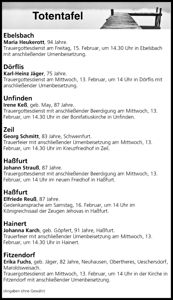 Totentafel vom 12.02.2019