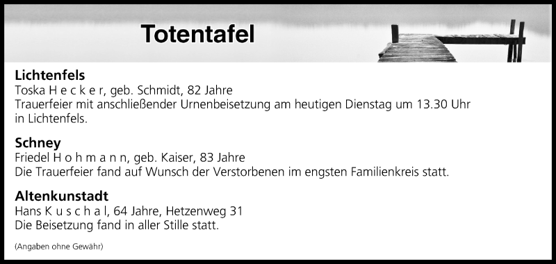 Hier finden Sie alle Traueranzeigen aus der Zeitung, die bisher für Totentafel vom 17.04.2018 erschienen sind. Weitere Traueranzeigen, die in der Zeitung erscheinen, werden hier ebenfalls aufgelistet