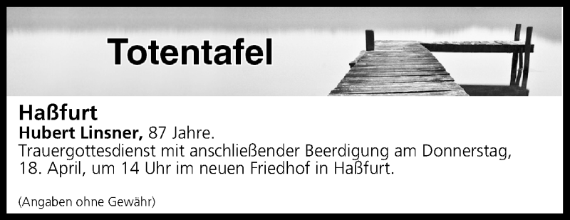 Hier finden Sie alle Traueranzeigen aus der Zeitung, die bisher für Totentafel vom 17.04.2019 erschienen sind. Weitere Traueranzeigen, die in der Zeitung erscheinen, werden hier ebenfalls aufgelistet