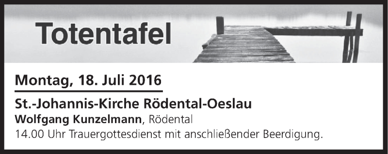 Hier finden Sie alle Traueranzeigen aus der Zeitung, die bisher für Totentafel vom 18.07.2016 erschienen sind. Weitere Traueranzeigen, die in der Zeitung erscheinen, werden hier ebenfalls aufgelistet