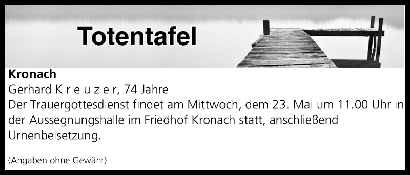 Hier finden Sie alle Traueranzeigen aus der Zeitung, die bisher für Totentafel vom 19.05.2018 erschienen sind. Weitere Traueranzeigen, die in der Zeitung erscheinen, werden hier ebenfalls aufgelistet
