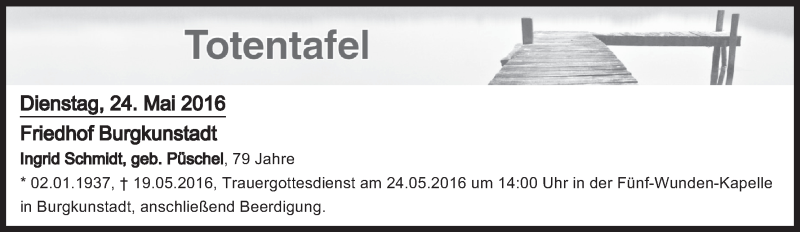 Hier finden Sie alle Traueranzeigen aus der Zeitung, die bisher für Totentafel vom 24.05.2016 erschienen sind. Weitere Traueranzeigen, die in der Zeitung erscheinen, werden hier ebenfalls aufgelistet