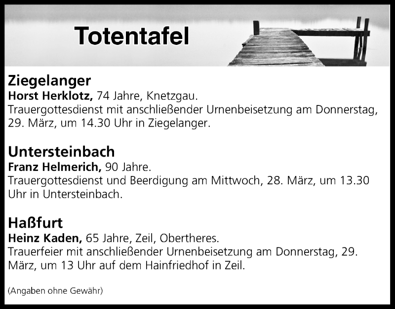 Hier finden Sie alle Traueranzeigen aus der Zeitung, die bisher für Totentafel vom 28.03.2018 erschienen sind. Weitere Traueranzeigen, die in der Zeitung erscheinen, werden hier ebenfalls aufgelistet