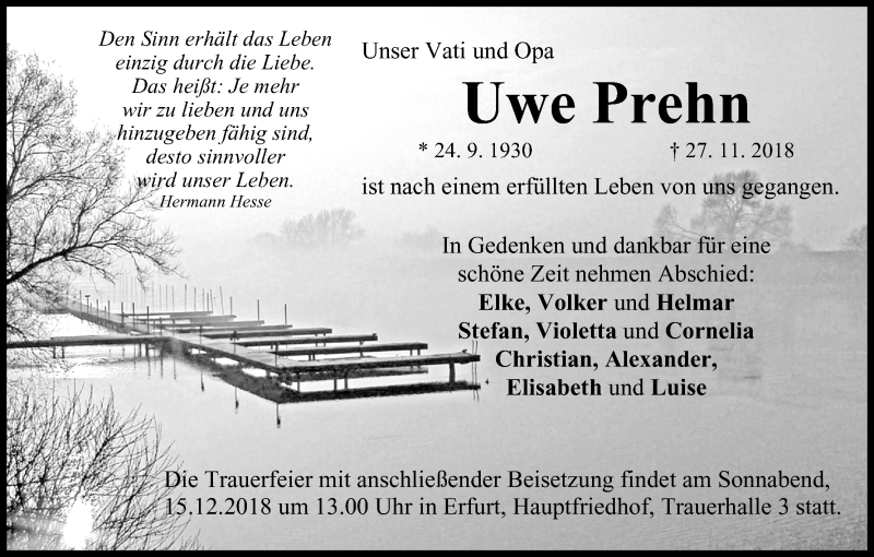 Hier finden Sie alle Traueranzeigen aus der Zeitung, die bisher für Uwe Prehn erschienen sind. Weitere Traueranzeigen, die in der Zeitung erscheinen, werden hier ebenfalls aufgelistet