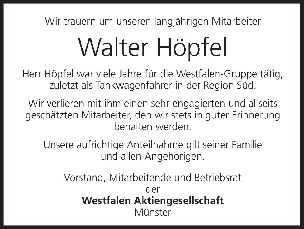 Hier finden Sie alle Traueranzeigen aus der Zeitung, die bisher für Walter Höpfel erschienen sind. Weitere Traueranzeigen, die in der Zeitung erscheinen, werden hier ebenfalls aufgelistet