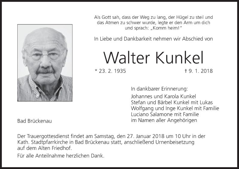 Hier finden Sie alle Traueranzeigen aus der Zeitung, die bisher für Walter Kunkel erschienen sind. Weitere Traueranzeigen, die in der Zeitung erscheinen, werden hier ebenfalls aufgelistet