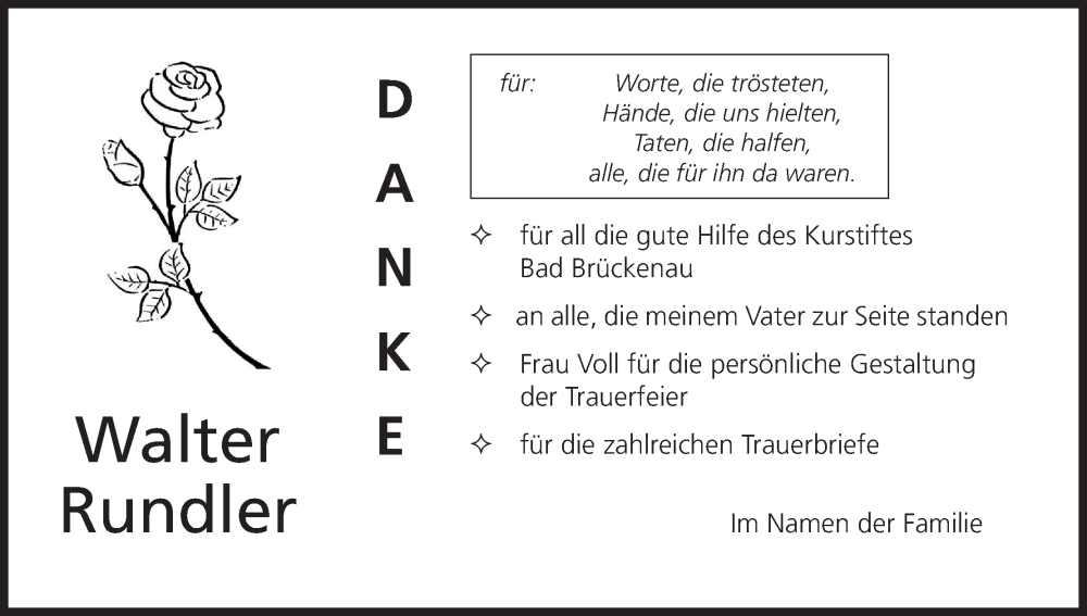 Hier finden Sie alle Traueranzeigen aus der Zeitung, die bisher für Walter Rundler erschienen sind. Weitere Traueranzeigen, die in der Zeitung erscheinen, werden hier ebenfalls aufgelistet