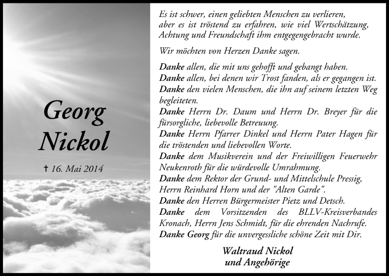 Hier finden Sie alle Traueranzeigen aus der Zeitung, die bisher für Waltraud Nickol erschienen sind. Weitere Traueranzeigen, die in der Zeitung erscheinen, werden hier ebenfalls aufgelistet