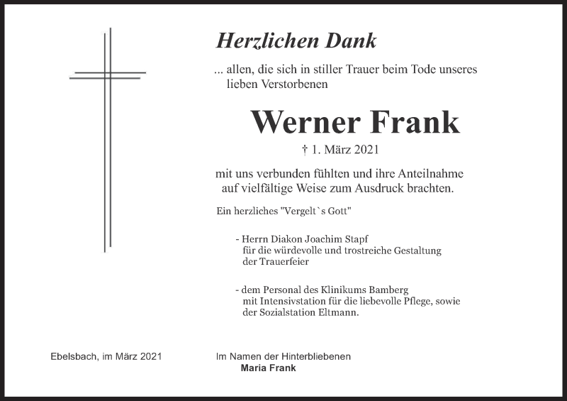 Hier finden Sie alle Traueranzeigen aus der Zeitung, die bisher für Werner Frank erschienen sind. Weitere Traueranzeigen, die in der Zeitung erscheinen, werden hier ebenfalls aufgelistet