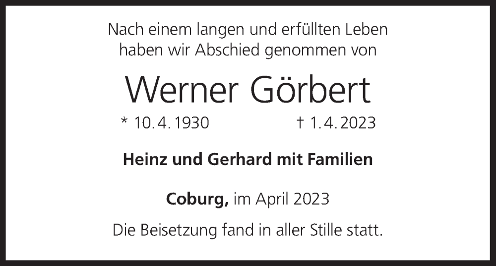 Hier finden Sie alle Traueranzeigen aus der Zeitung, die bisher für Werner Görbert erschienen sind. Weitere Traueranzeigen, die in der Zeitung erscheinen, werden hier ebenfalls aufgelistet