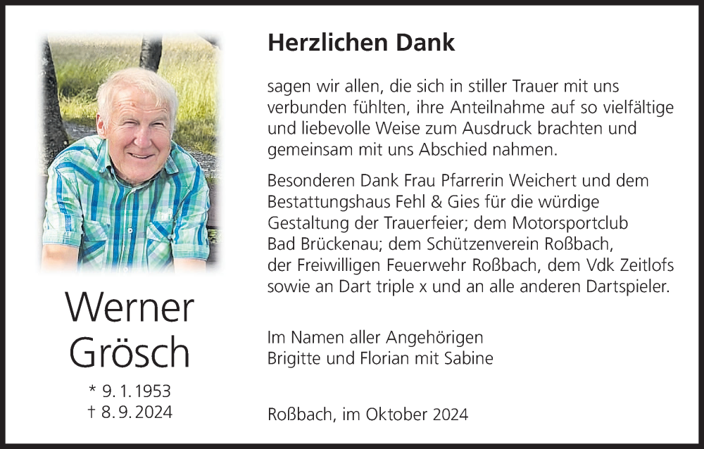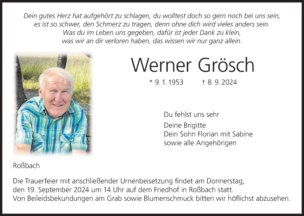 Hier finden Sie alle Traueranzeigen aus der Zeitung, die bisher für Werner Grösch erschienen sind. Weitere Traueranzeigen, die in der Zeitung erscheinen, werden hier ebenfalls aufgelistet